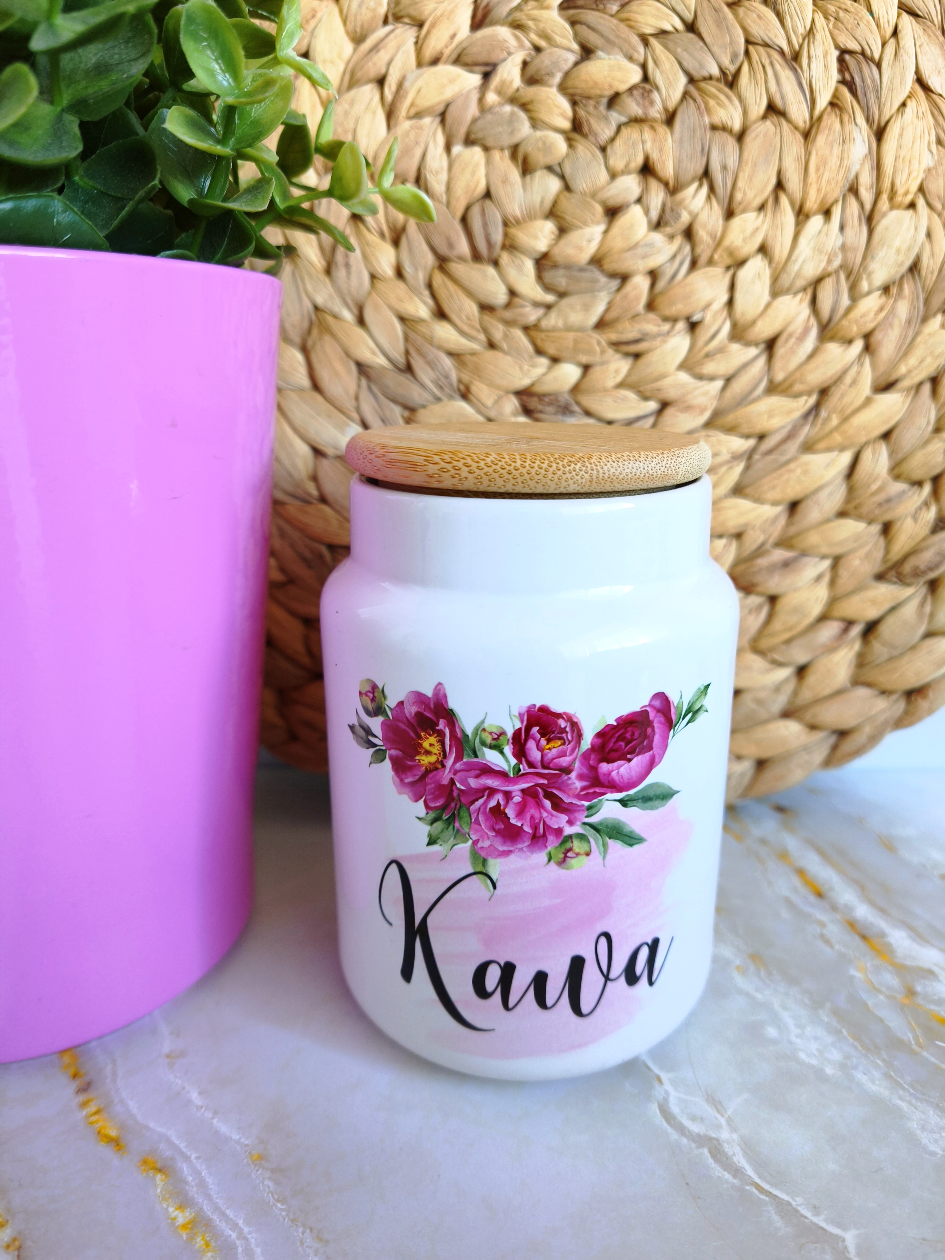 Pojemnik ceramiczny z bambusową pokrywką KAWA