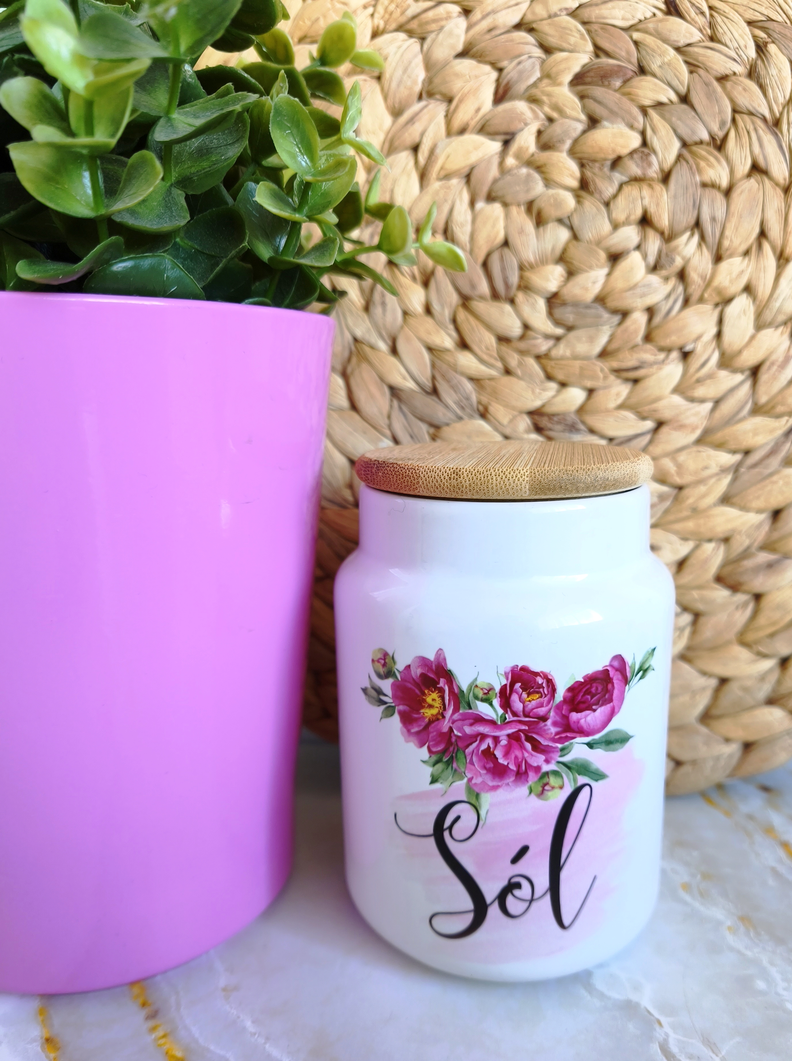 Pojemnik ceramiczny z bambusową pokrywką SÓL