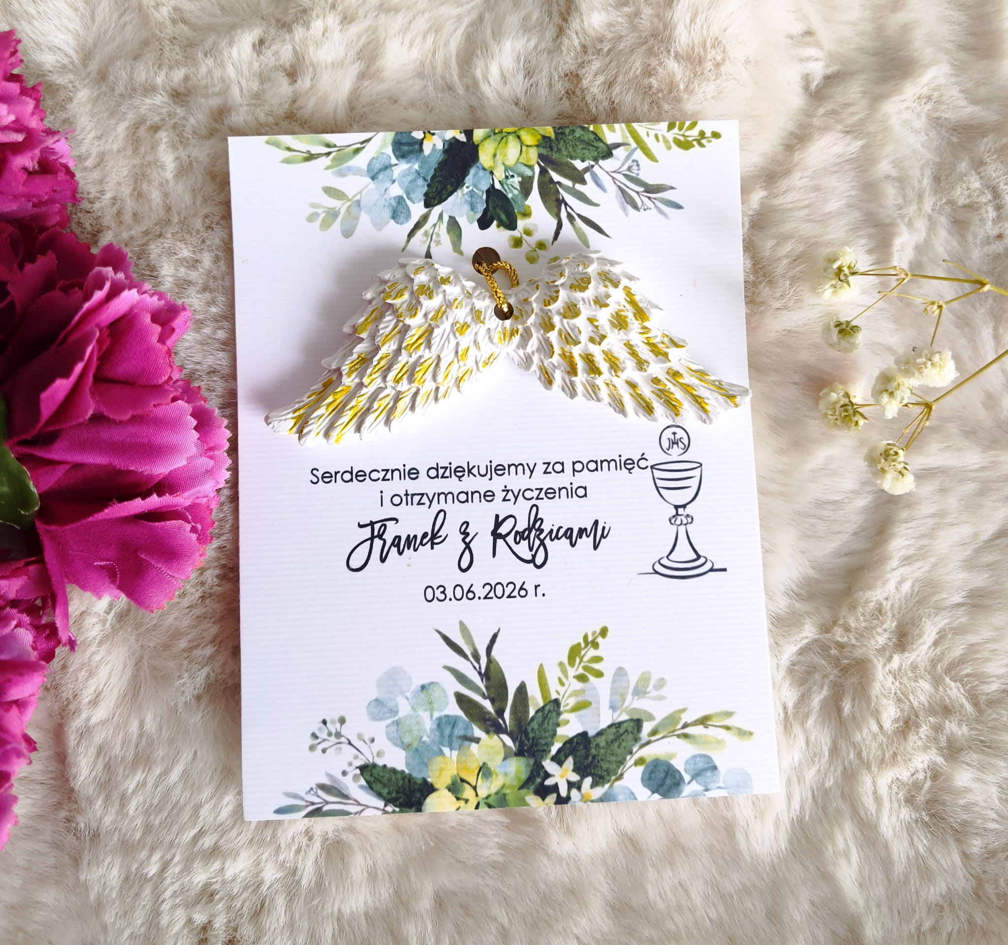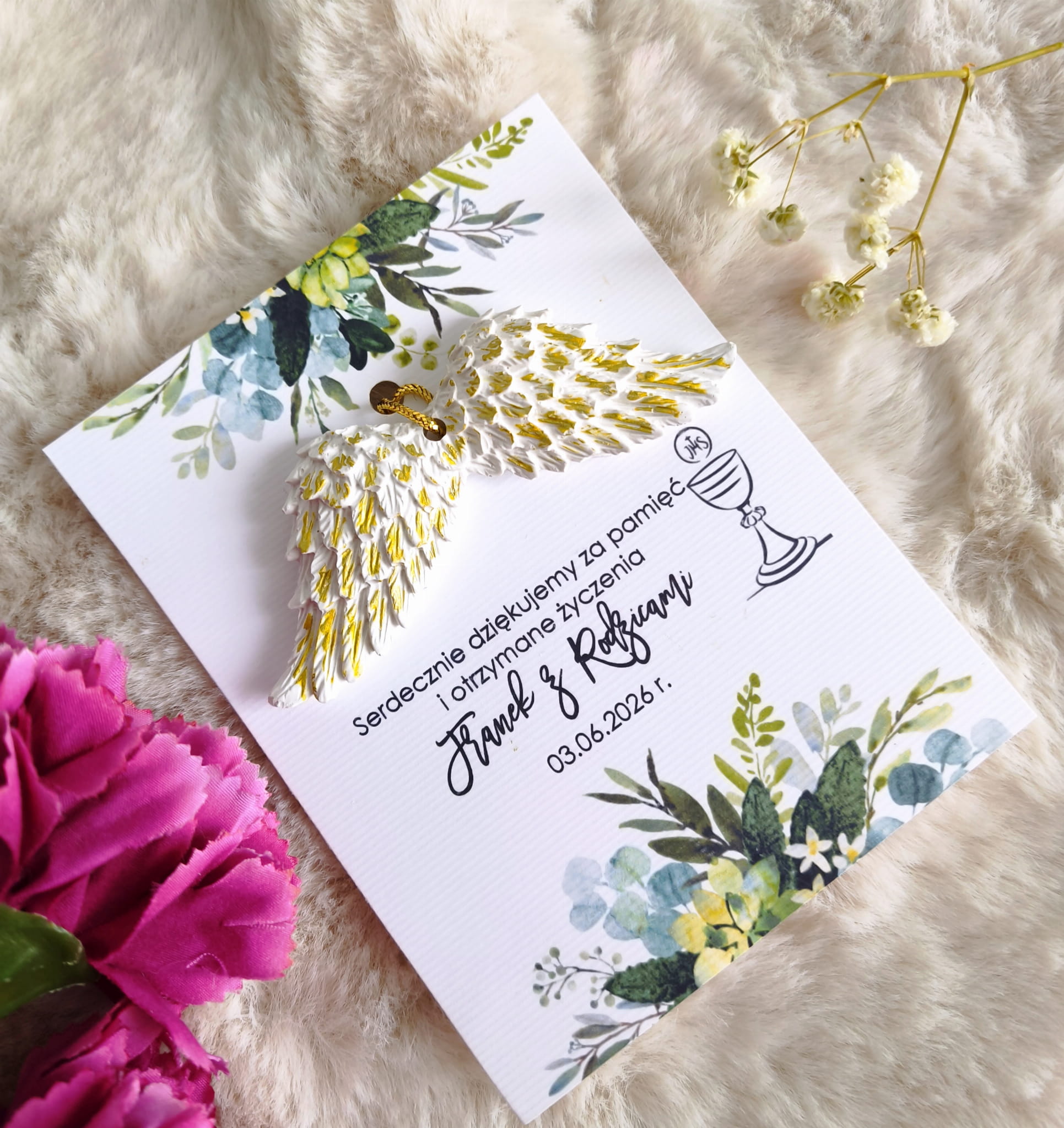 Skrzydła anioła gipsowe podziękowania na Komunię, chrzest, ślub, urodziny złote